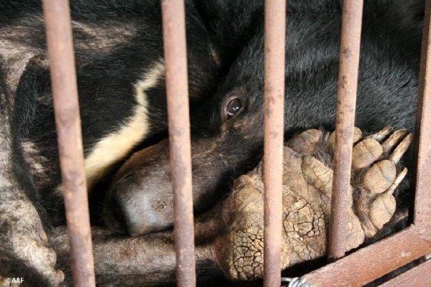 In Asia, mainly in China and Vietnam, more than 15,000 bears are held in brutal captivity, for the purpose of extracting their bile, which is used in outdated traditional Chinese medicine. Most of the bears used are the endangered Asiatic moon bears, although sometimes the larger brown bears or the smaller sun bears are used. These bears are either trapped from the wild, babies snatched from their mothers or bred in captivity. Many bears are missing limbs from being snarled in traps or deliberately amputated for bear paw soup. These poor bears are held in cages literally the size of coffins, and receive very little food or water, let alone proper veterinary care. Almost daily, they are milked for the bile, in the most painful way, through rusty catheters, medicinal pumps, or even through free drip methods, where holes are drilled into their bellies. Some bears have to endure wearing barbaric metal jackets with neck spikes. Because of their stoic and resilient nature, they can survive for up to 30 years in this unimaginable torture.